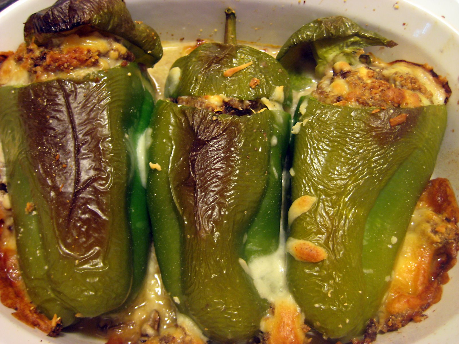 I love stuffed peppers, and this recipe really was geared towards using what I had on hand in the garden and kitchen. It was the first time I chose not to use rice in favor of bread crumbs and mushrooms. The aroma and flavor were excellent. Add fresh chopped hot peppers or crushed red pepper if you want some kick.