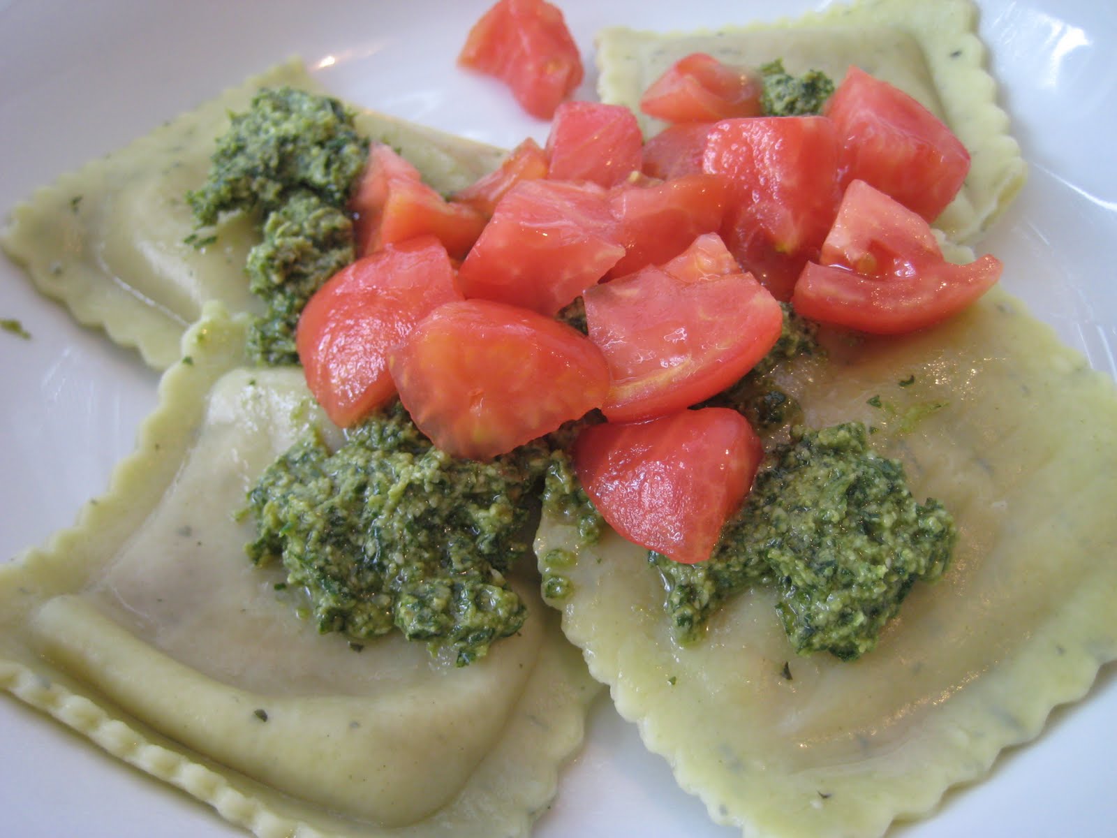 For lunch, I cooked some Sundried Tomato & Gorgonzola Rravioli by Nuovo which I purchased from Whole Foods. I topped it with the pesto and a fresh tomato from the garden. It was delicious!