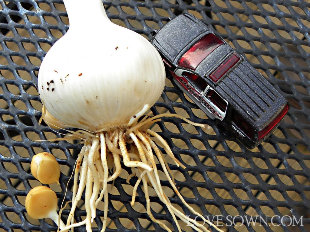 This is the elephant garlic. I threw in a Hotwheels car for size comparisson. It isn’t as big as the ones in the supermarket, but for homegrown garlic, it looks pretty good.