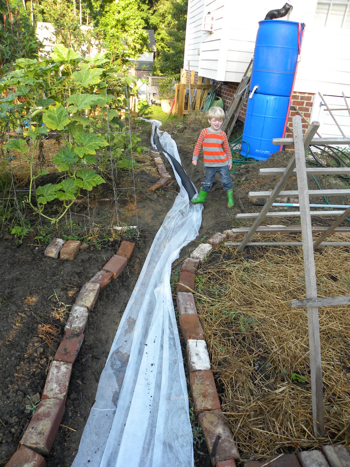 We live on a hill, so we thought flooding wouldn’t be a problem; however, our garden sits on the one flat spot of the yard that retains water. It seems that all the runoff from the back of the lot passes through and gets trapped. The pond-like stench as I sunk my shovel into the soil after Lee passed through told me that I had some work to do if I wanted to prevent some of the diseases and saturated root zone I dealt with this summer. Knowing I had a drainage problem was somewhat of a relief as I’d been down on myself over several failures.