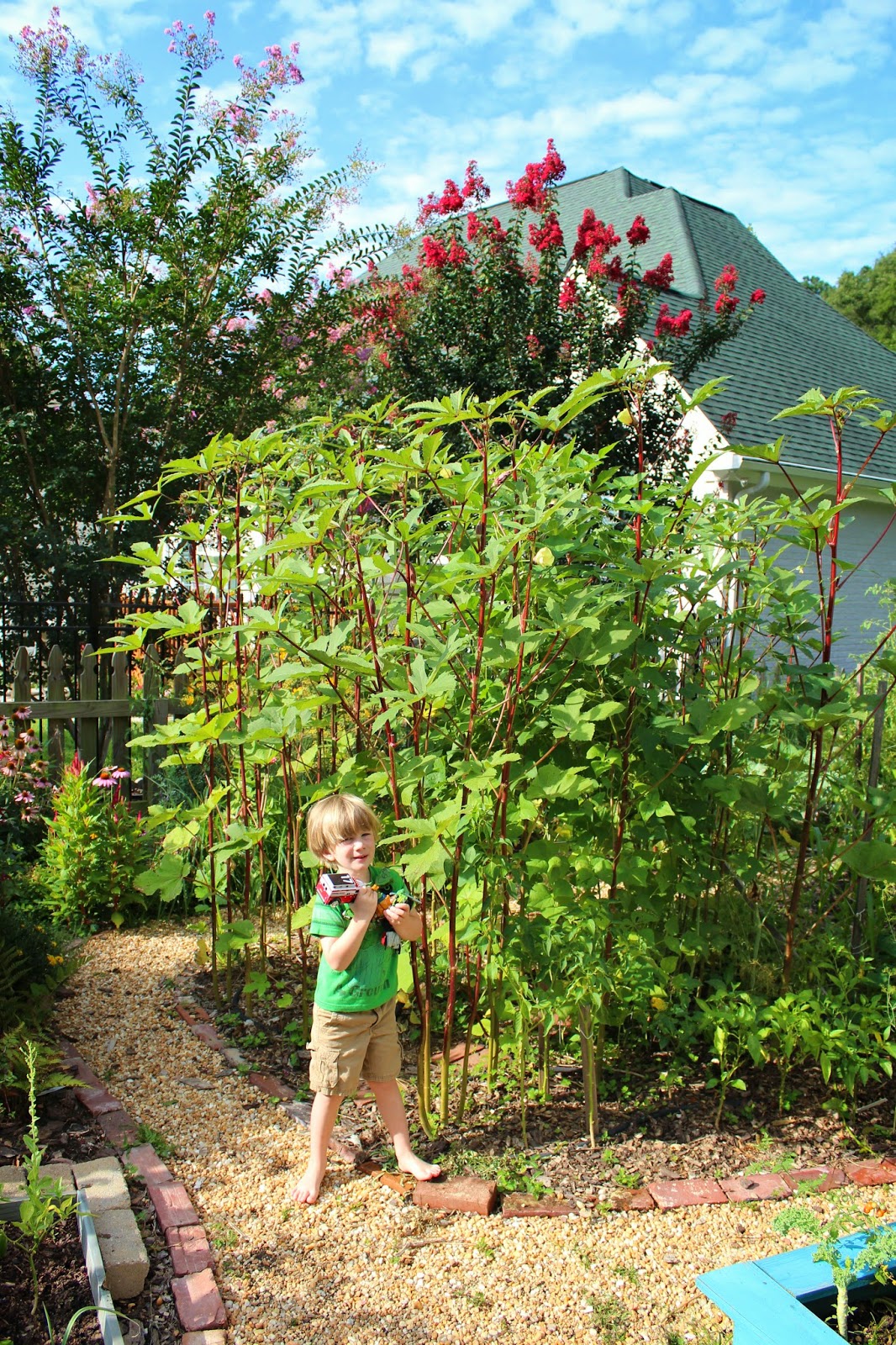 I pulled out my Canon Rebel t4i this past weekend and can’t seem to put it down. I had forgotten how much fun I have shooting with my camera as opposed to the phone. I added another round of fertilizer and Epsom salts to the tomatoes, and based on the results, I think I have over fertilized. The tomatoes themselves look pretty good, but the leaves have burned edges, spots, and are yellowing. I really hope I’m not dealing with a bacterial/fungal/disease issue, but I will move the tomatoes to a new location next summer to be sure. Instead of focusing on the dead and dying, I’m enjoying capturing the growth in the garden.