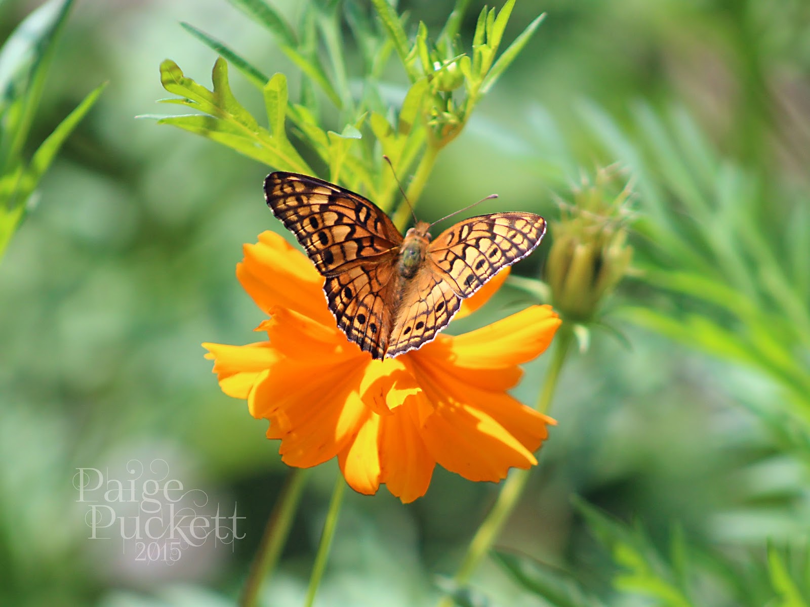 Variegated Fritillary on Cosmos (a butterfly)