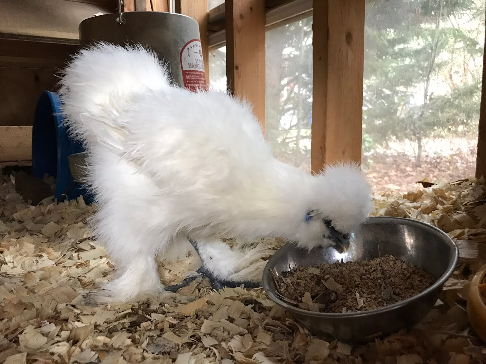 With the rest of the flock in the yard, the Silkies are at ease looking for treats in the run.