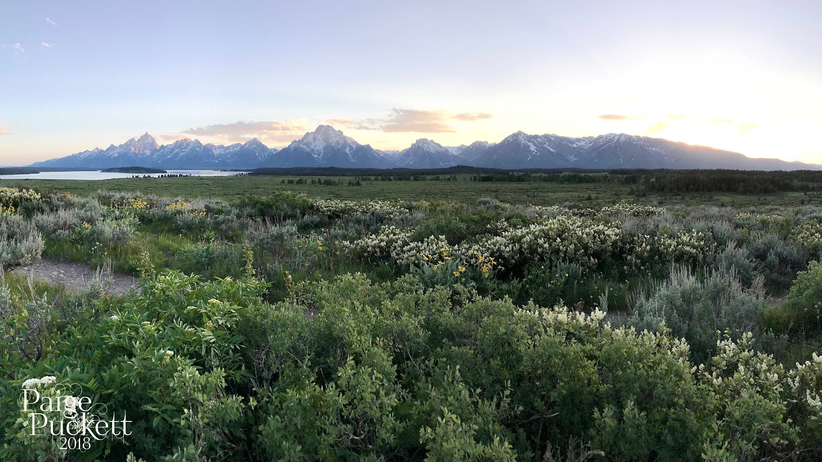 The view from Jackson Lake Lodge’s patio overlooks Willow Flats, Jackson Lake, Elk Island, and the Grand Tetons. Looking out at the range, if you hike to your right, you will take a trail up a hill known as Lunch Tree Hill. We climbed the hill both evenings as the views simply couldn’t be beat. The mosquito activity was intense! I think we ruined several perfect shots out of the necessity of swatting them off our faces. They sucked straight through yoga tights and the hair on my head! Lunch Tree Hill was worth it though. Here’s an excerpt we ran across on the ascent: