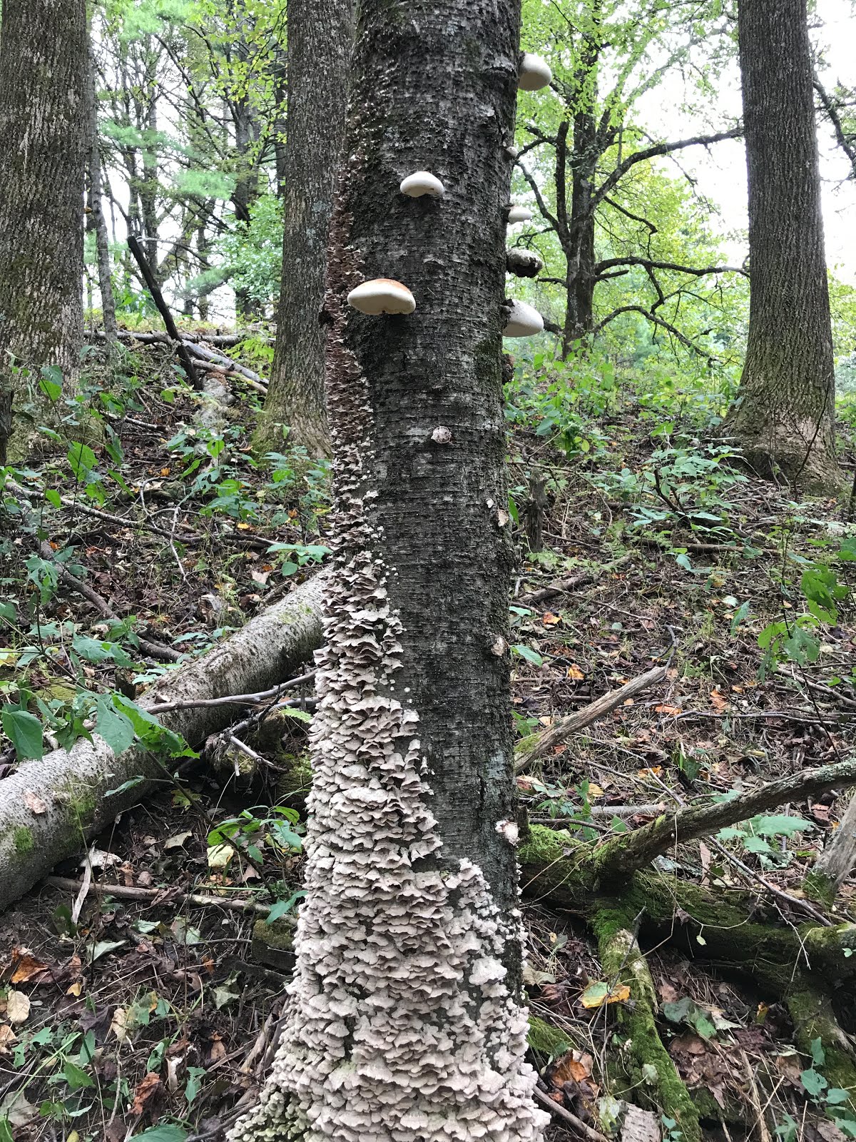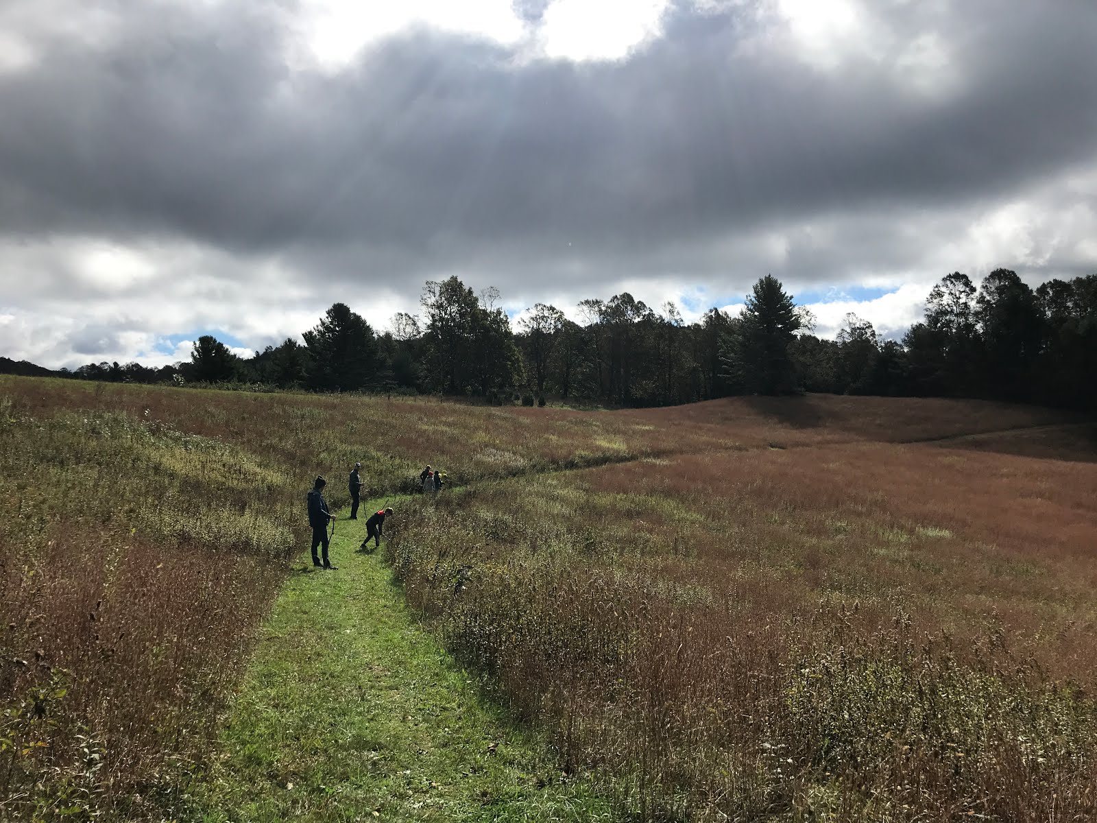 I don’t know if Brinegar is pronounced like vinegar. I might should have asked the park staff that was working the weaving loom at the cabin. We hiked from the campsite to Brinegar’s cabin, and I enjoyed all the textures on the trees and the wide open field along the parkway.